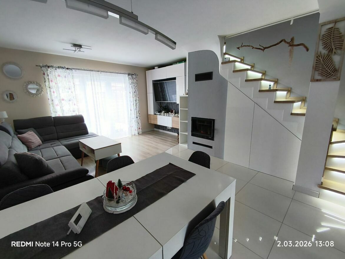 Dom z 2017 roku, w pełni wyposażony i wykończony – gotowy do zamieszkania bez żadnych nakładów. Idealna propozycja dla pary, małej rodziny– z własnym ogródkiem, garażem,placem zabaw dla dzieci,zadaszoną altanką letnią,kominkiem.