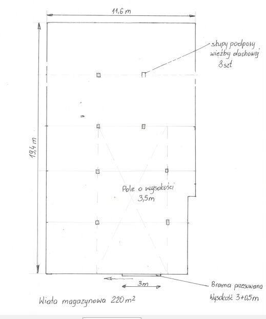 Na wynajem hala/wiata magazynowa, z przeznaczeniem podmagazyn/usługi/produkcję, o powierzchni 220 m2 wraz z działką o